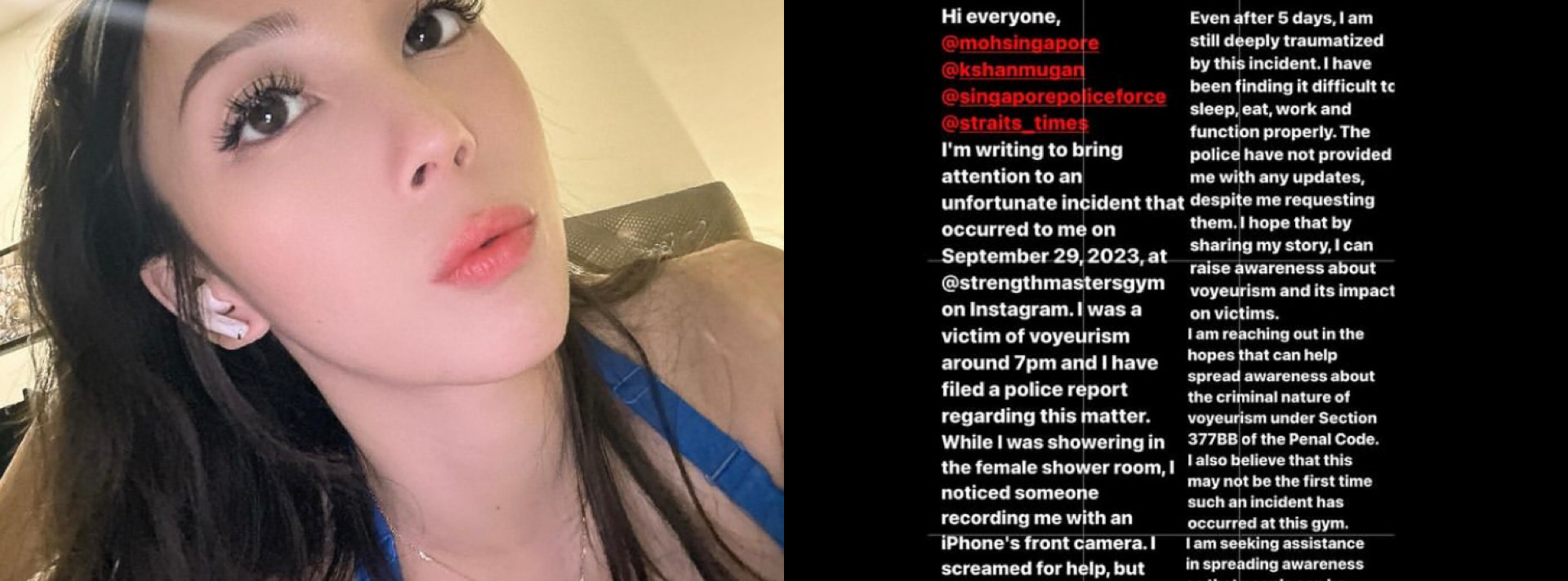 One woman was shocked and violated when she discovered that someone was secretly filming her while she was taking a cold shower at a gym. Drealya Tan, a 26-year-old fitness instructor, said that she felt so scared and ashamed after the incident last Friday (Sept 29) at Strength Masters Gym in Tai Seng that she…